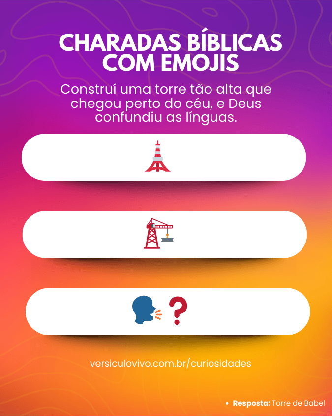 21. Sou uma torre muito alta que os homens tentaram construir para chegar ao céu. Por causa disso, Deus confundiu suas línguas. O que sou eu?