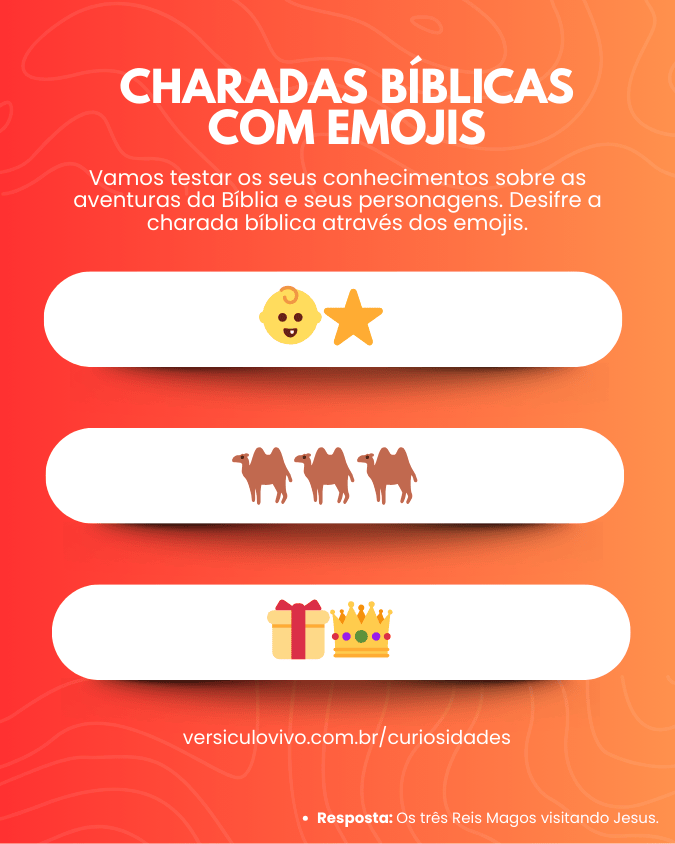 Frequentemente, muitos pais e educadores buscam por 50 perguntas sobre jesus infantil para usar em suas aulas ou em casa. Assim sendo, as Charadas bíblicas engraçadas a seguir são um ótimo ponto de partida, já que abordam desde o seu nascimento até os seus milagres. Do mesmo modo, elas podem ser complementadas com um recurso como 50 Perguntas sobre Jesus Infantil Para Imprimir, a fim de realizar atividades mais extensas.