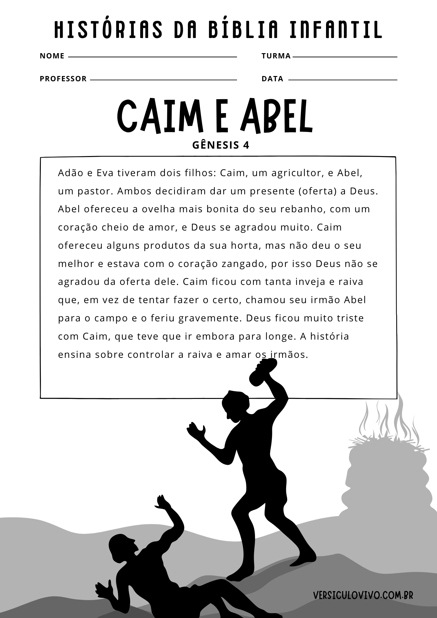 Deus ficou muito triste com Caim e perguntou: ‘Onde está o seu irmão?’ Caim teve que ir embora para bem longe, mas Deus nos ensinou que devemos sempre controlar a raiva e amar nossos irmãos.