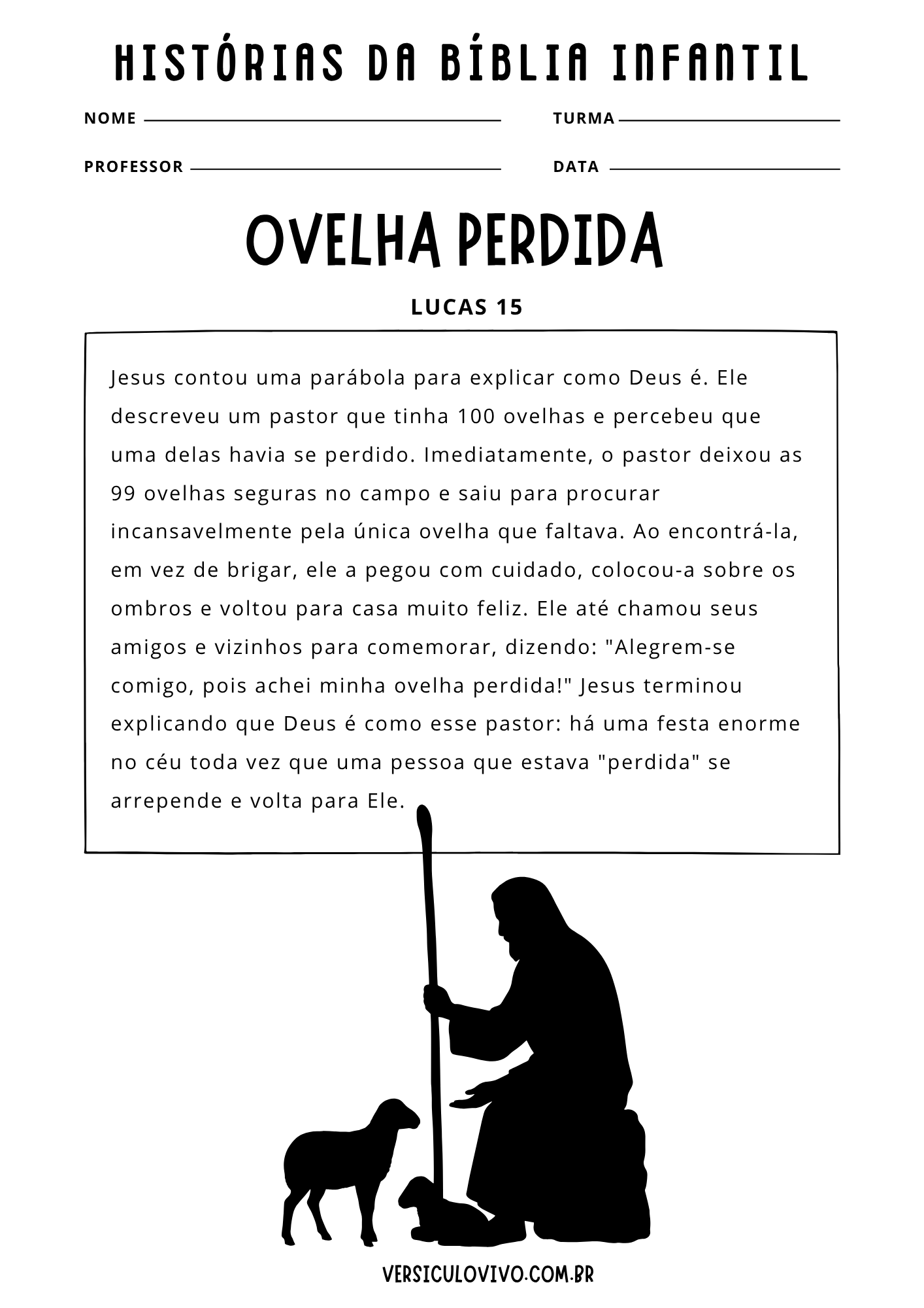 ‘Imaginem um pastor que tem 100 ovelhas. Ele cuida muito bem de todas elas. Mas, no fim do dia, quando ele vai contar… 97, 98, 99… Ué! Está faltando uma! Uma ovelhinha se perdeu!’