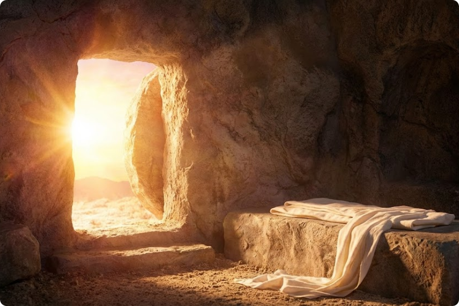Se a história terminasse no sepulcro, a morte de Jesus teria sido em vão. Porém, o cristianismo se fundamenta no fato de que o túmulo está vazio. Ao terceiro dia, a pedra foi removida e Ele ressuscitou, vencendo a morte e o inferno. A ressurreição é a garantia de que o sacrifício foi aceito por Deus.