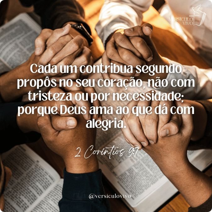 “Lembrem-se: aquele que semeia pouco também colherá pouco, e aquele que semeia com fartura também colherá fartamente. Cada um dê conforme determinou em seu coração, não com pesar ou por obrigação, pois Deus ama quem dá com alegria.”
