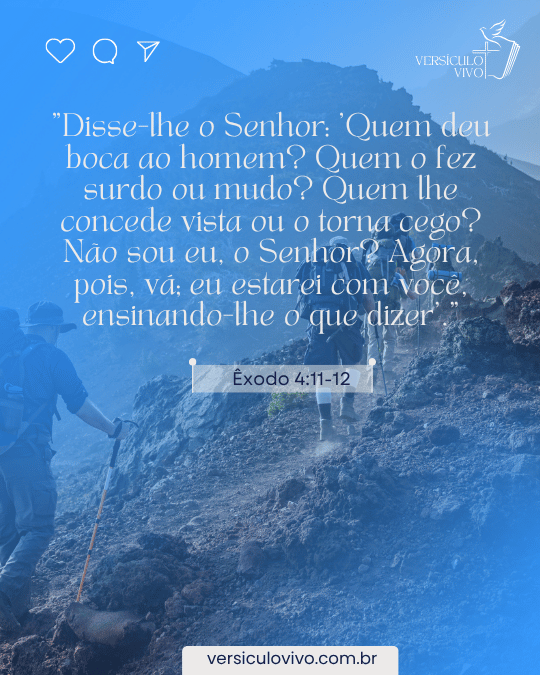 “Disse-lhe o Senhor: ‘Quem deu boca ao homem? Quem o fez surdo ou mudo? Quem lhe concede vista ou o torna cego? Não sou eu, o Senhor? Agora, pois, vá; eu estarei com você, ensinando-lhe o que dizer’.”